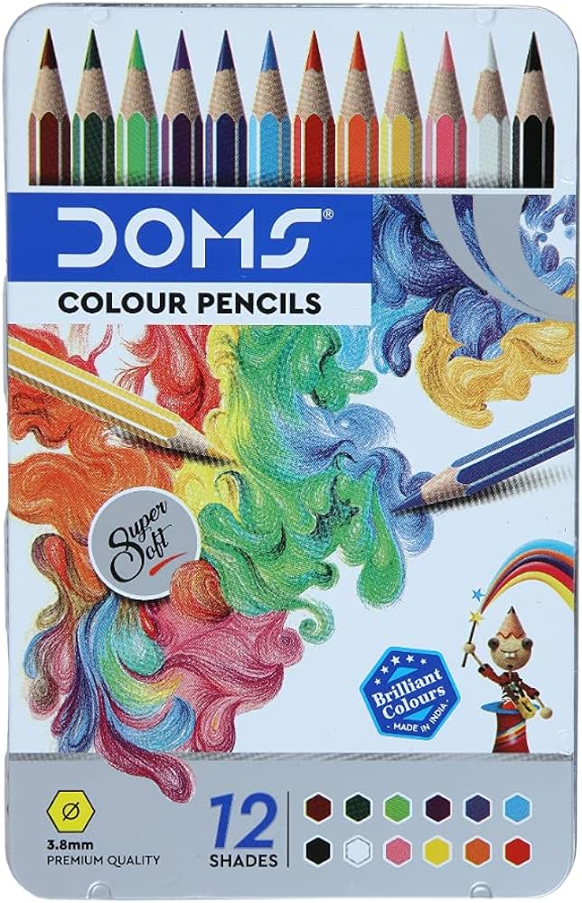The Doms Colour Pencils 12 Shades set features a collection of 12 vibrant and brilliant colors, perfect for artists, students, and anyone who enjoys coloring. The pencils are crafted with precision to ensure smooth and consistent color application, allowing for detailed and expressive artwork. The set comes in an attractive and sturdy packaging, which also includes a free sharpener and an extender, making it a convenient choice for art enthusiasts. The design on the packaging highlights the dynamic color range and includes beautiful illustrations of butterflies and other artistic elements.